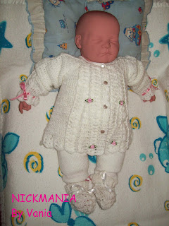 Conjunto em crochê, em lã para bebê antialérgica branca e lilás. Esse modelinho copiei da Nélia da Magia do Crochet.