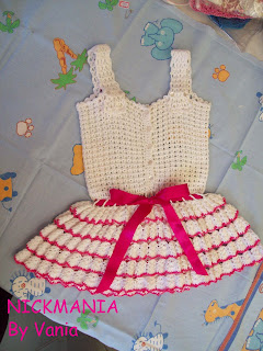 Conjunto de batinha e calcinha para bebê confeccionado em crochê em linha de algodão, com abotoamento nas costas e detalhe em fita de cetim. Tamanho de 0 a 3 meses e pode ser feito no tamanho e cor desejados.